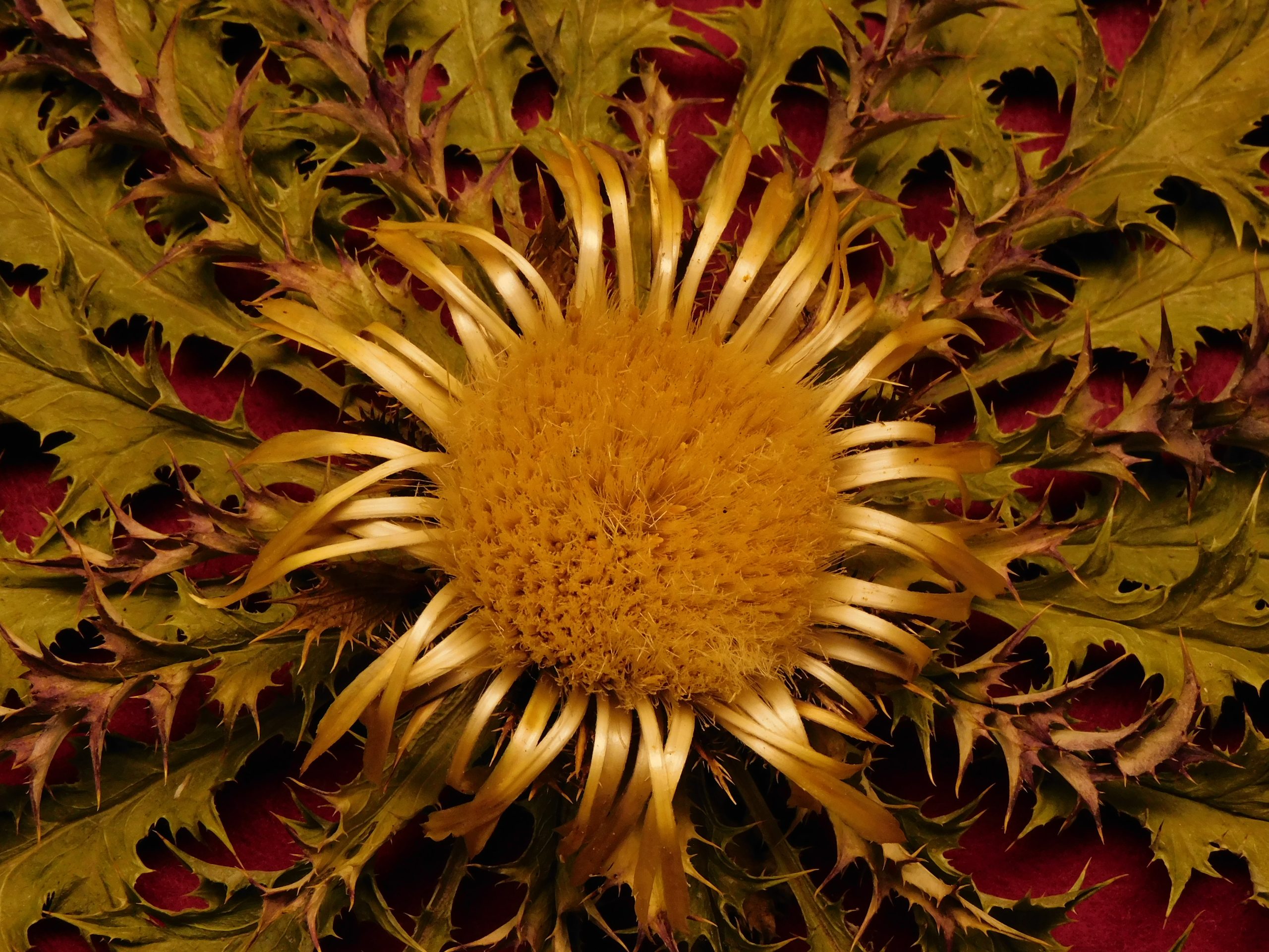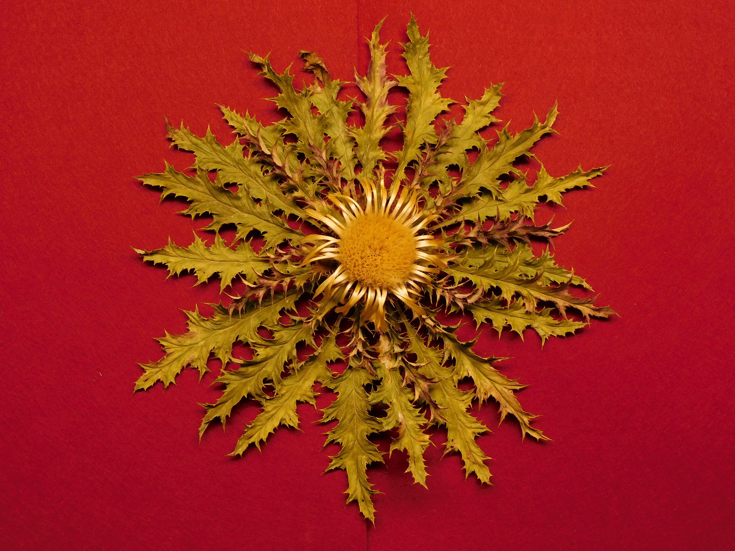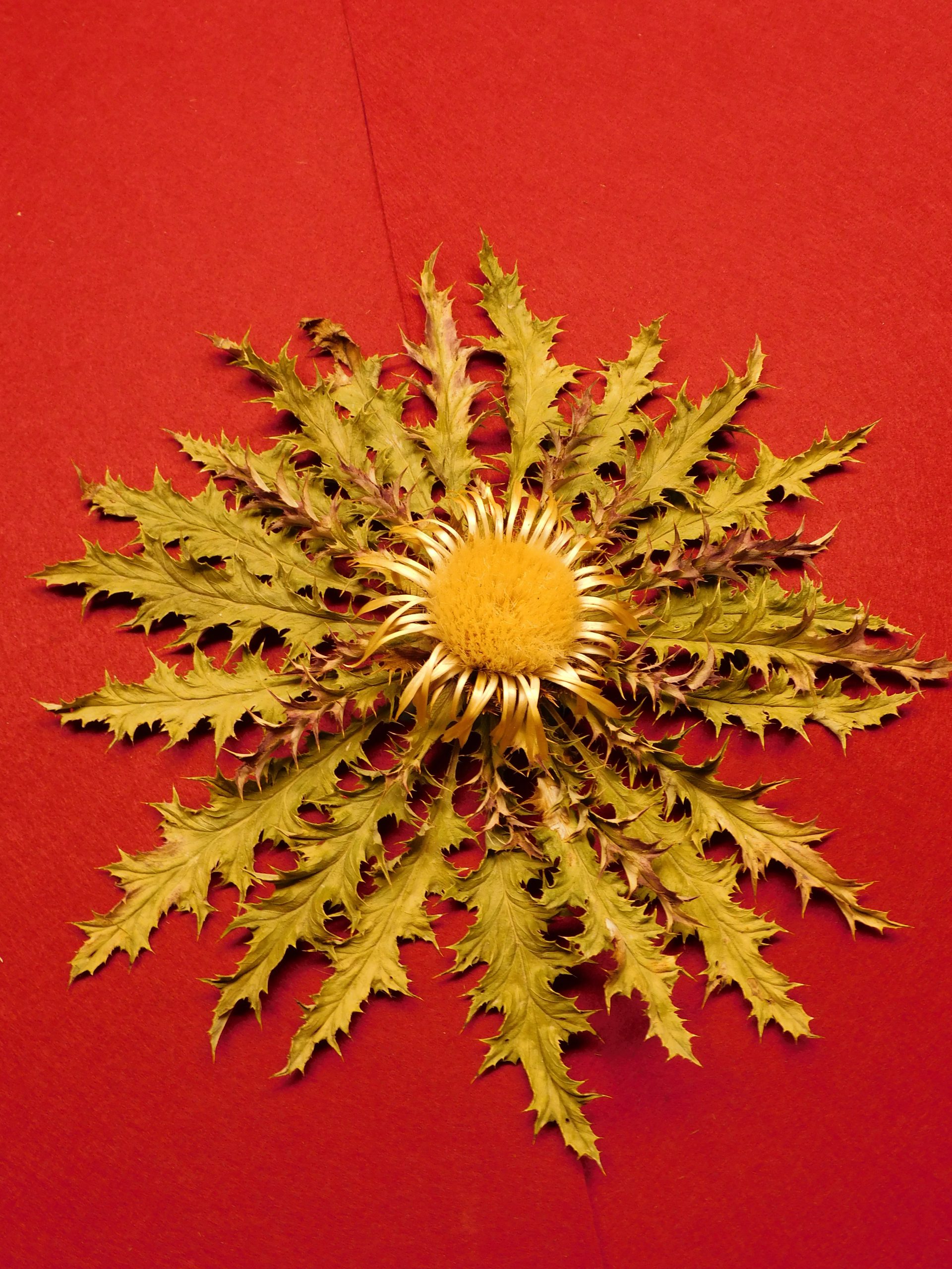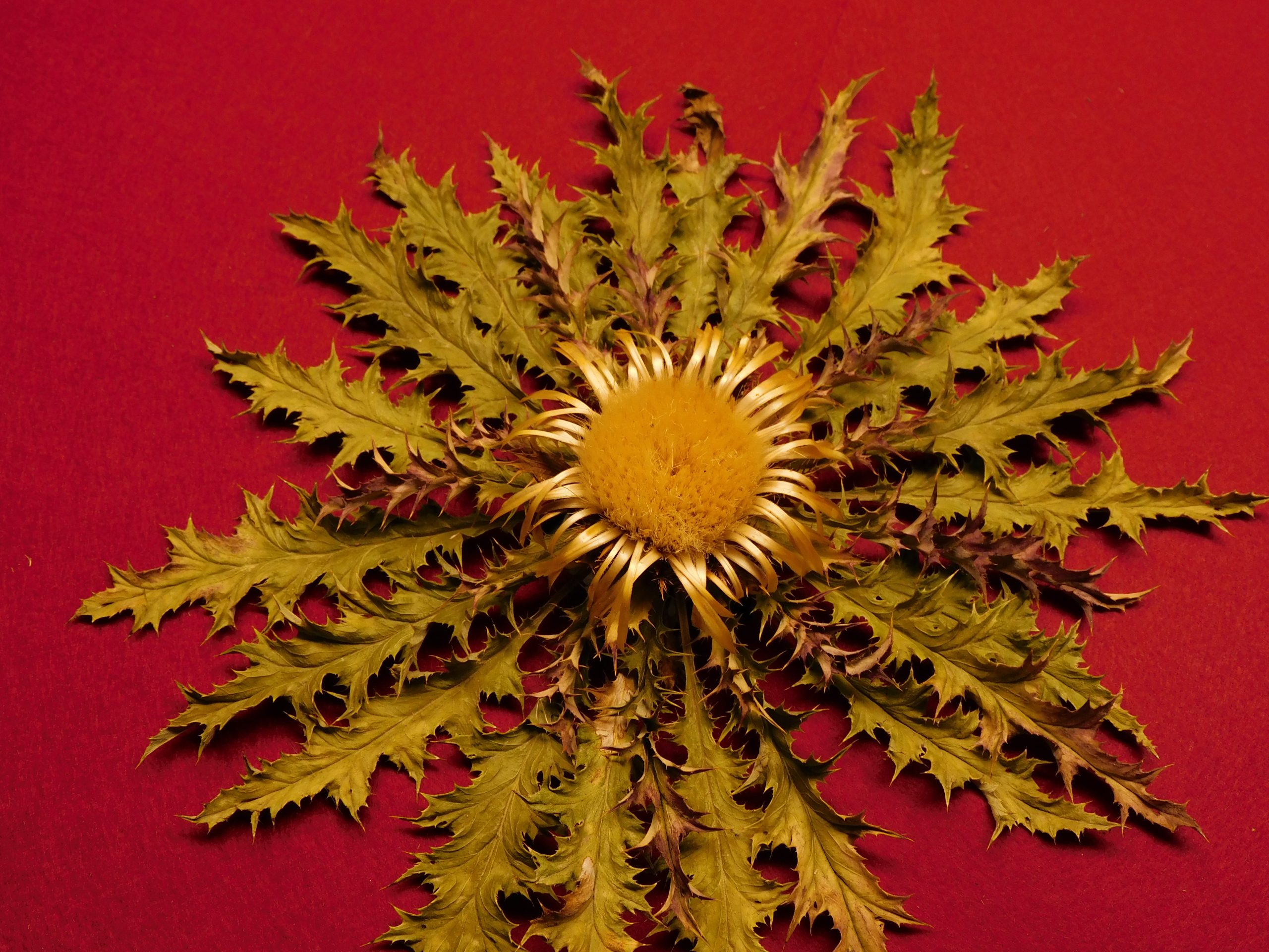Flor de Eguzkilore blanca de 25 cm de roseta y 8 de flor central, de tamaño medio.