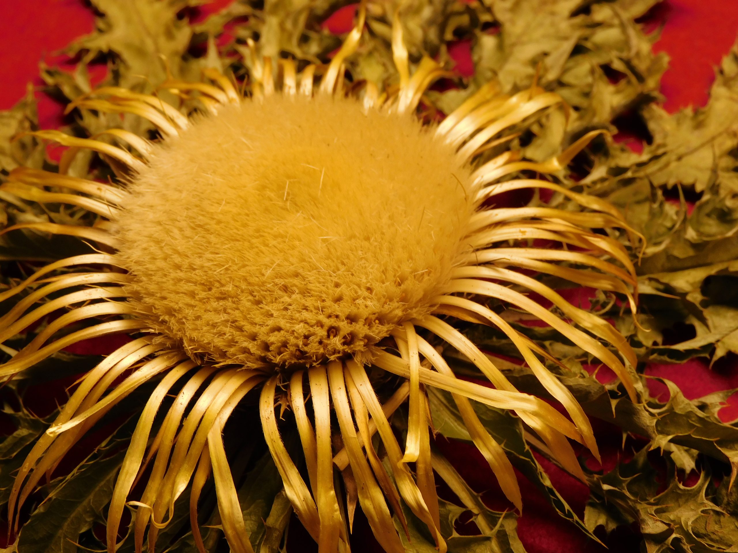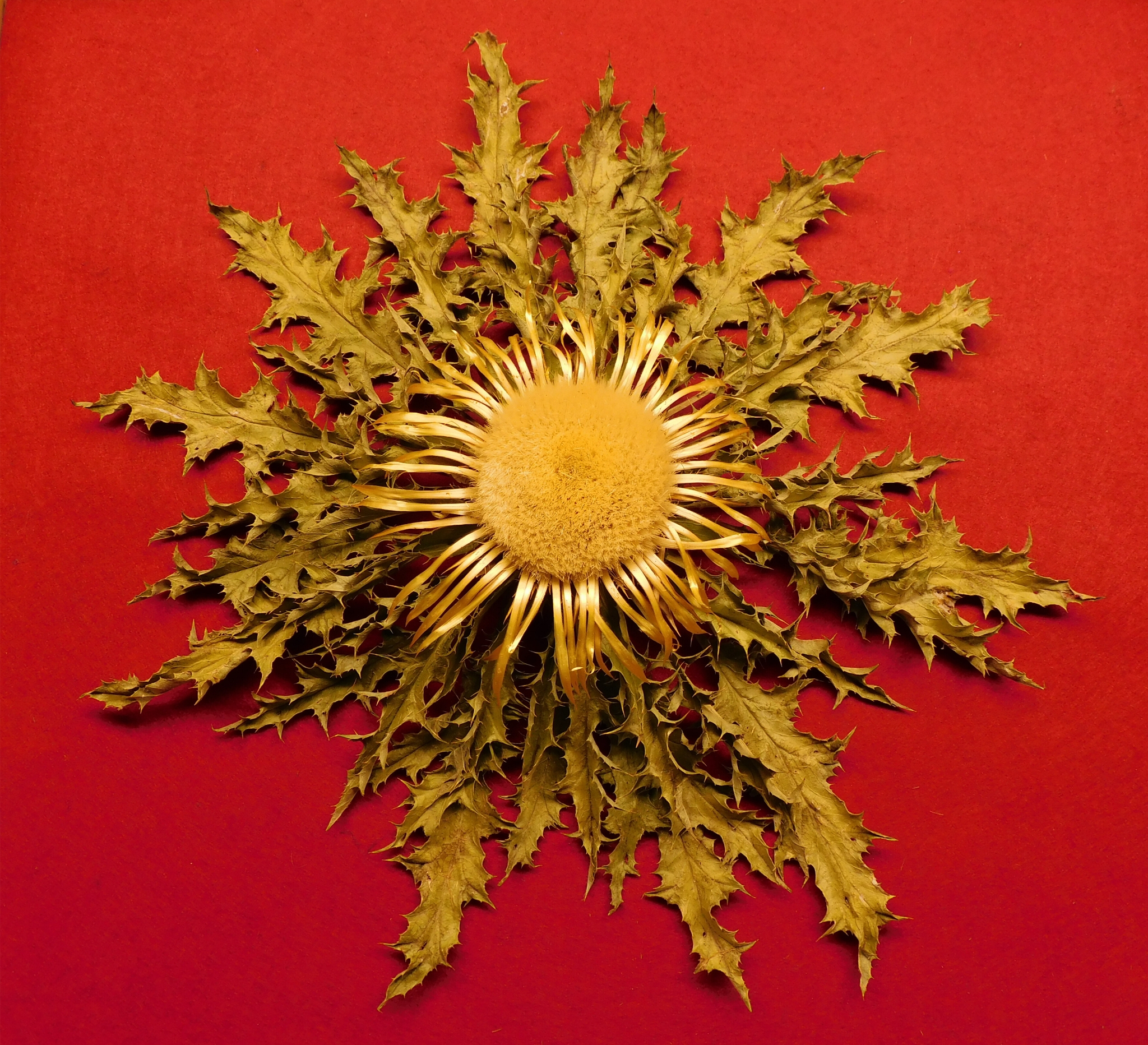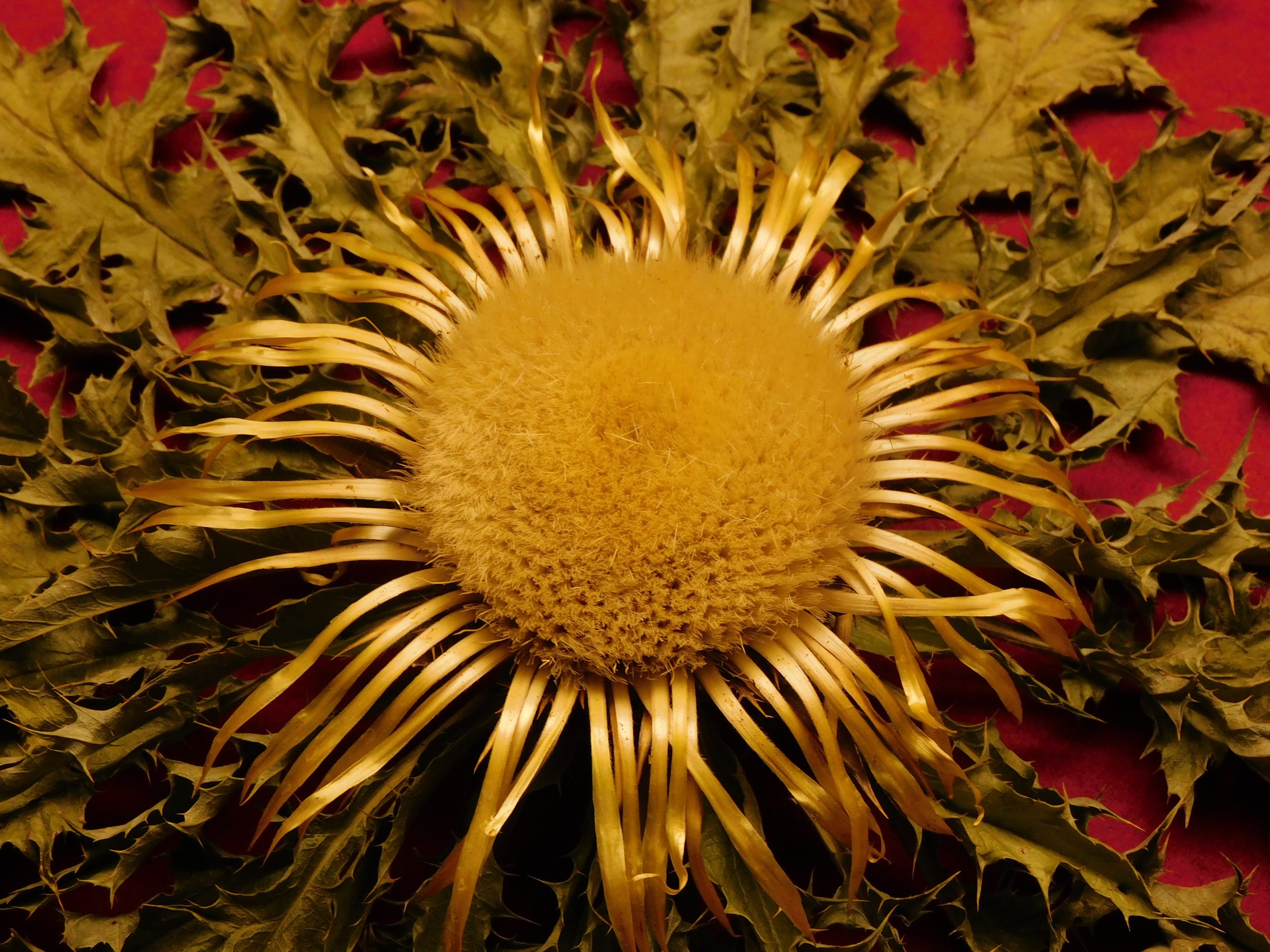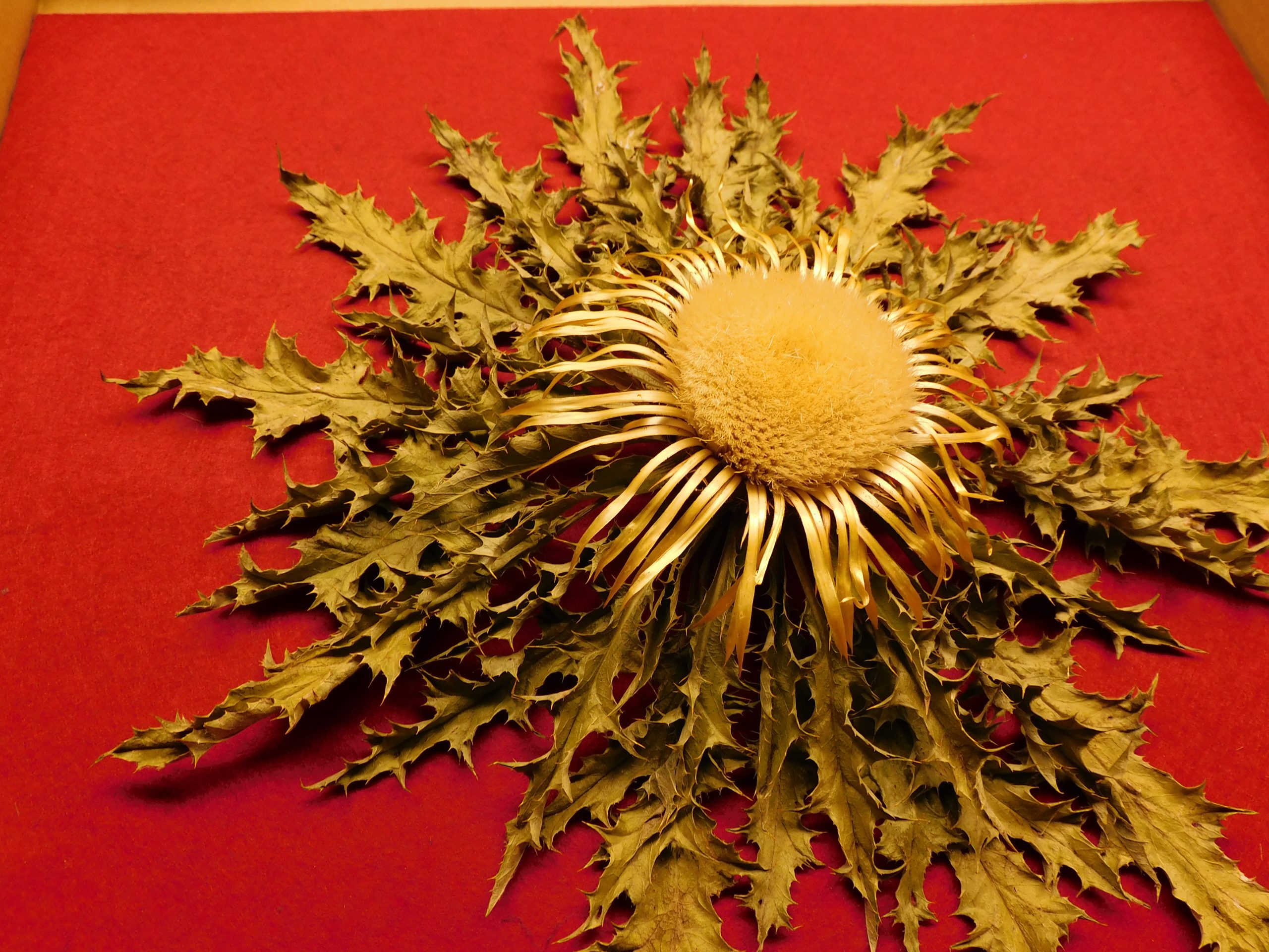 Flor de Eguzkilore de 31 cm de roseta y 13 de flor central, tamaño medio-grande.