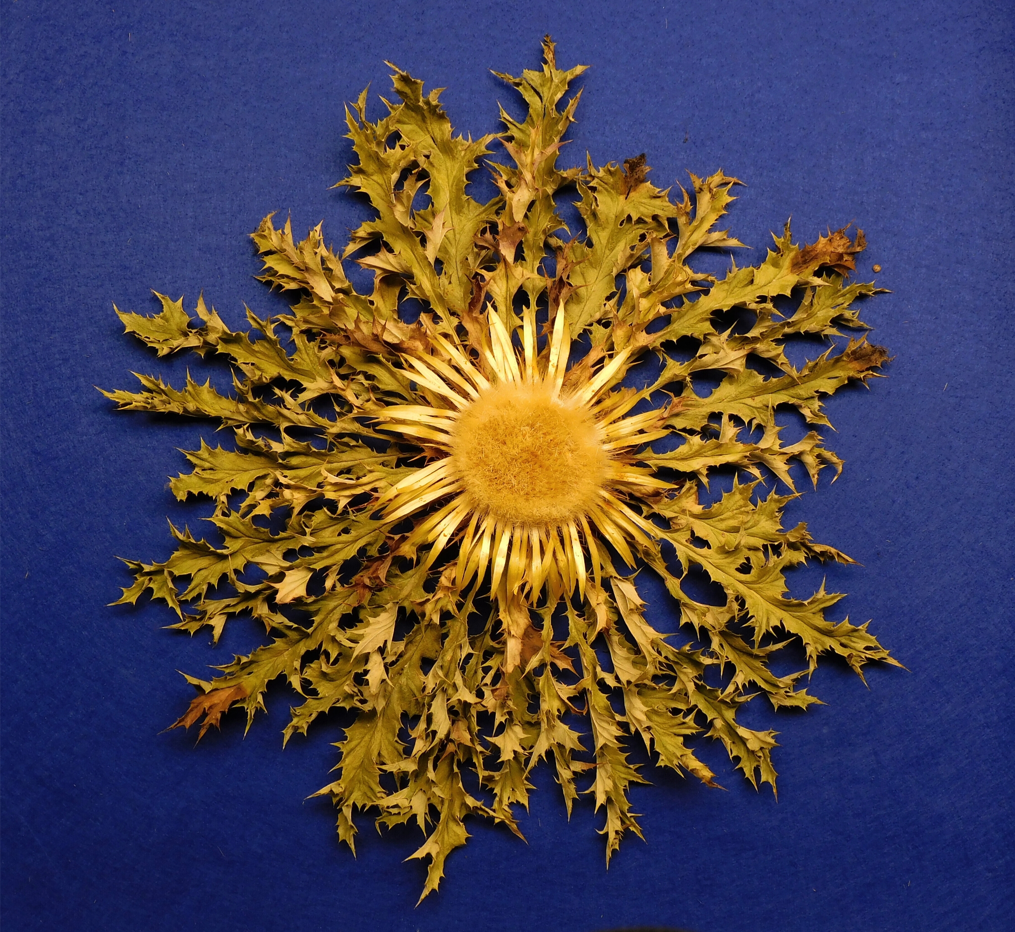 Flor de Eguzkilore de tamaño mediano-grande con on sus 33 cm totales y 12 de flor central.