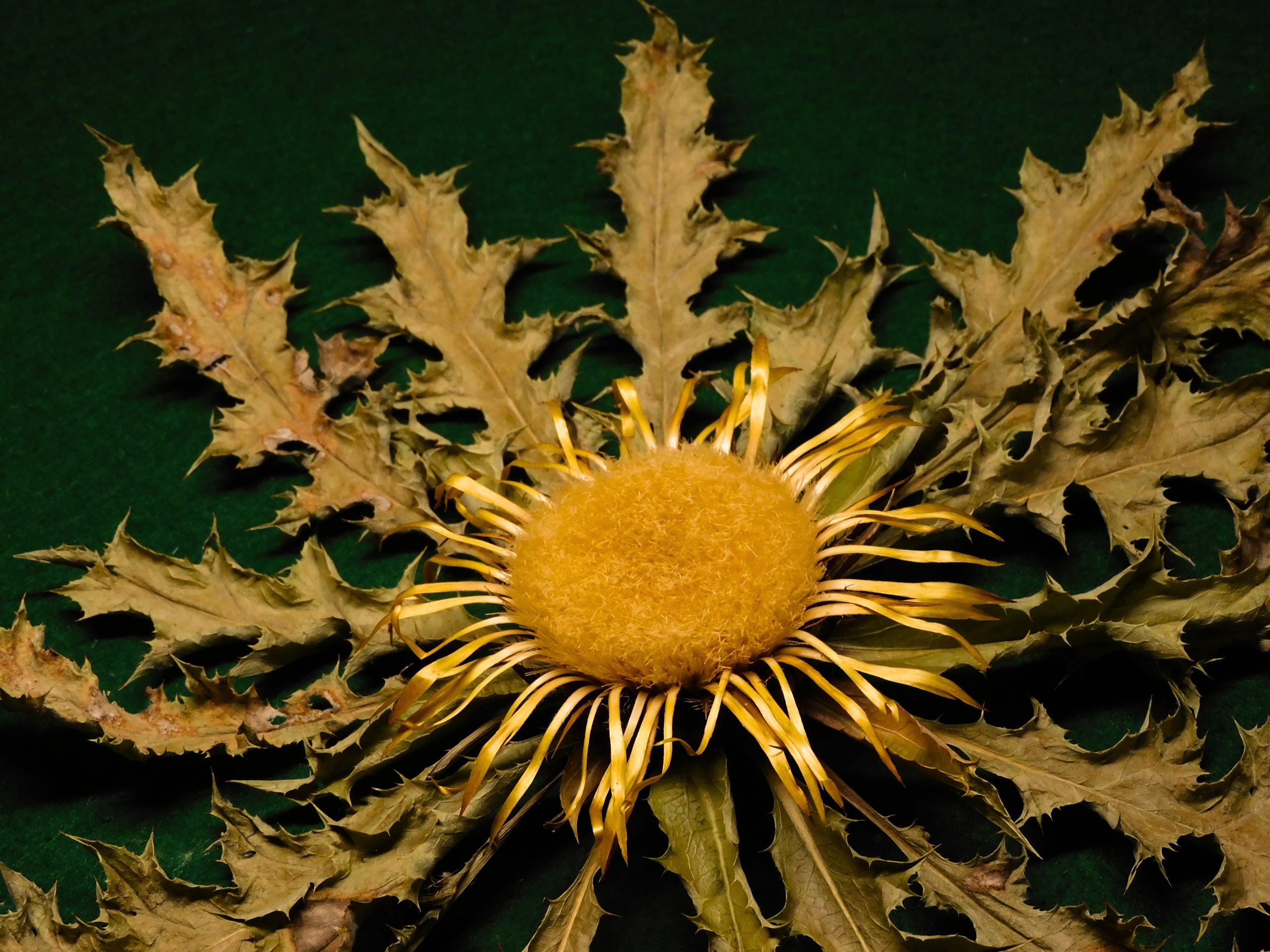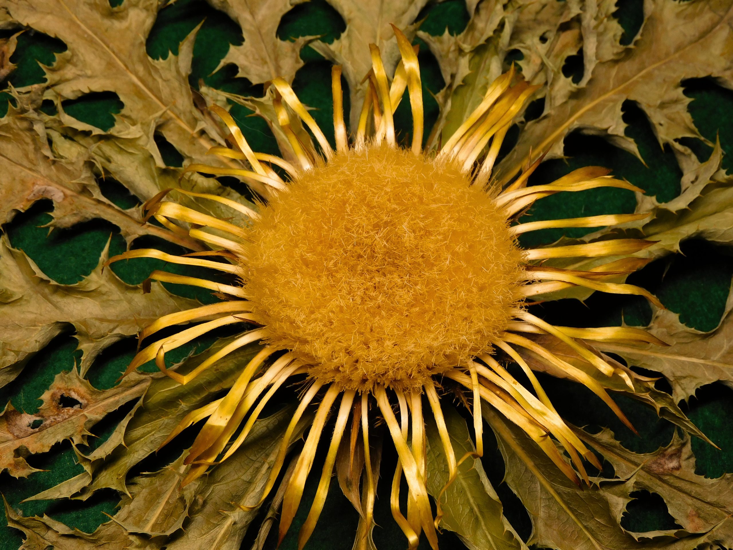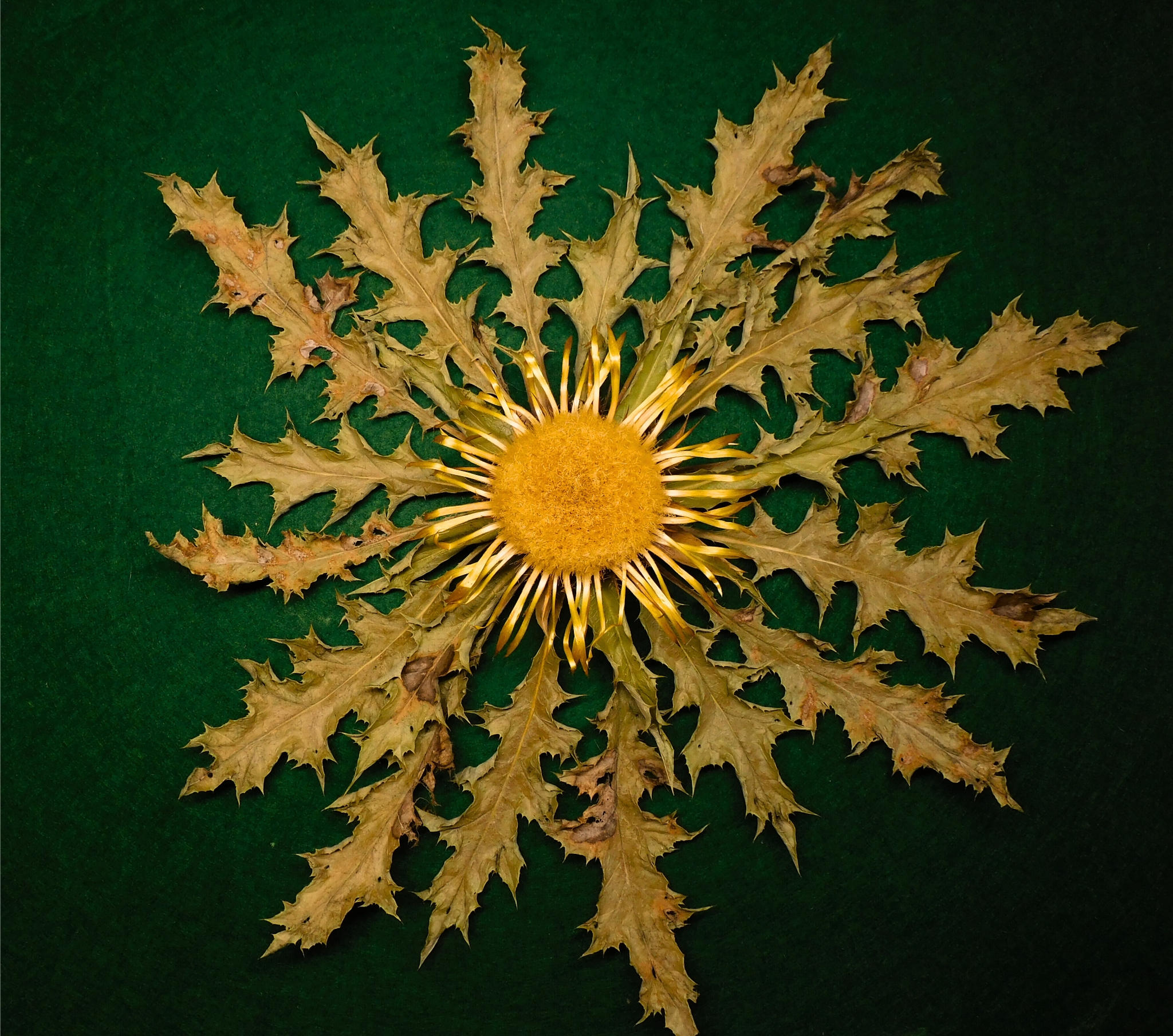 Flor de Eguzkilore de 34 cm de roseta y 11 de flor central, tamaño grande.